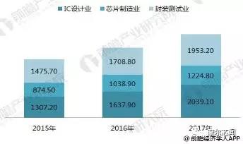 图表2:2015-2017年我国集成电路行业结构规模(单位:亿元)