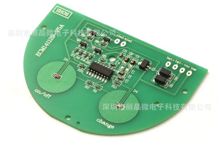 两路灯光输出触摸无极调光电路板,触摸芯片工作电压DC2.4-5.5V,输入电压可在12V以内。当