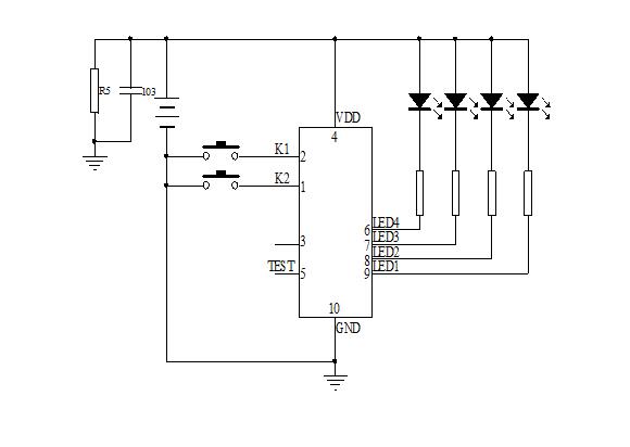 这款七彩闪灯芯片共有两个按键控制,独立工作。由按键K2控制3路七彩灯渐明渐暗输出,